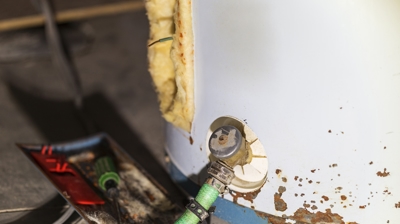 If you notice rusty or discolored water coming from your hot water tap, it could be a sign of corrosion inside your water heater tank. While rusty water can originate from old pipes, persistent discoloration often indicates that the water heater is corroding from the inside and may soon begin leaking.